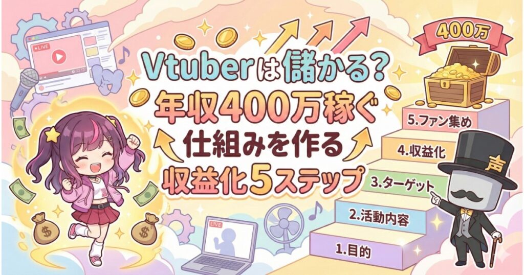 【初心者向け】Vtuberは儲かる?年収400万稼ぐ仕組みを作る収益化5ステップ
